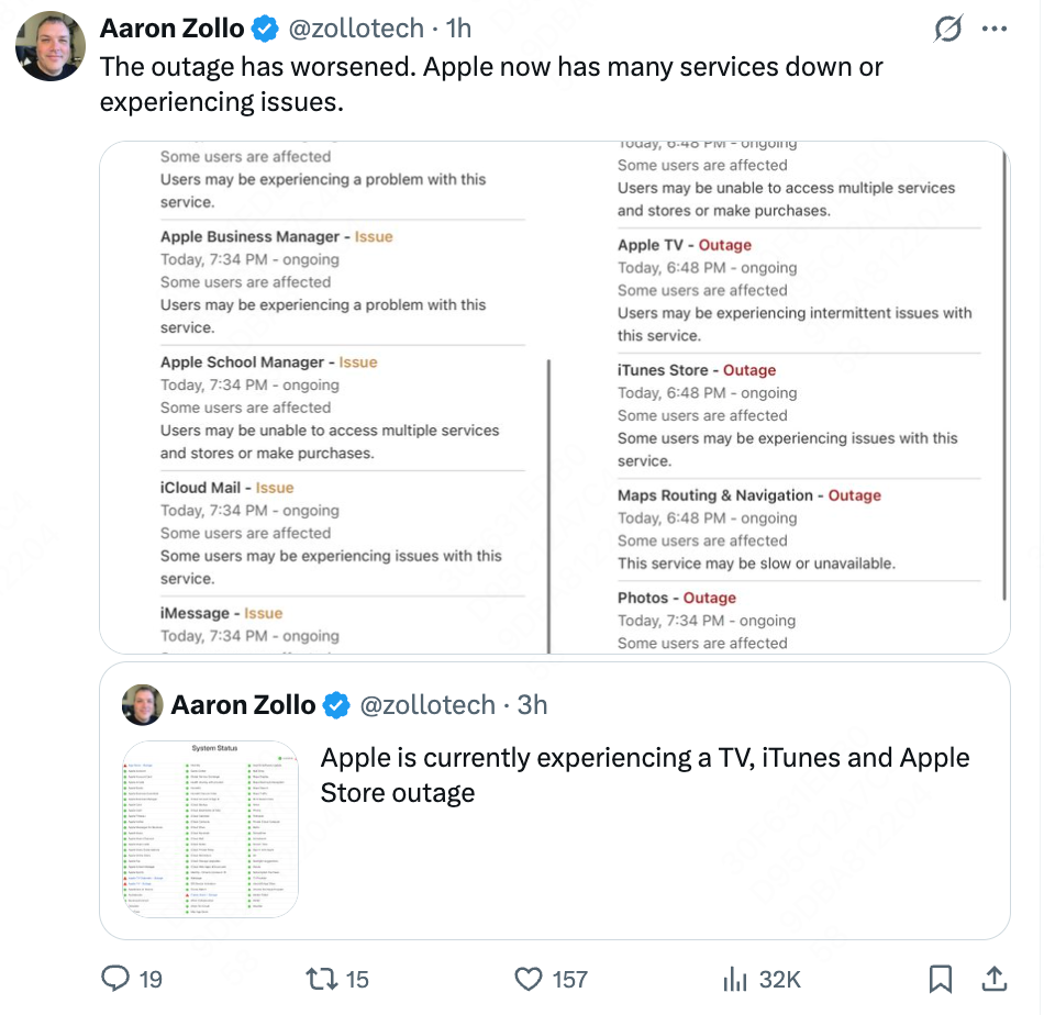 值得玩味的是,稳定性和可靠性一直是苹果反复强调的品牌核心资产,但现实再次证明,当应用分发、通信、存储和生产力工具全面云端化之后,一旦底层服务出现问题,封闭生态反而会被放大成系统性风险,用户几乎没有绕行空间。
