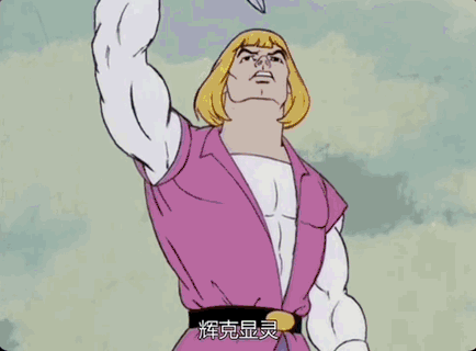只要他举起力量之剑,并喊出那句“辉克显灵,赐予我力量吧”就会变成身高两米肌肉发达的超级英雄。