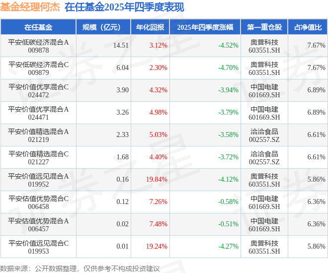 证券之星消息,截止2025年四季度末,基金经理何杰旗下共管理10只基金,本季度表现最佳的为平安估值优势混合A(006457),季度净值跌0.51%。