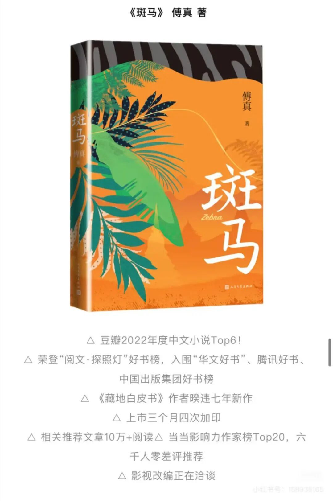 豆瓣2022年度中文小说Top6、上市三个月加印四次、影视改编洽谈中——傅真的小说《斑马》曾是一匹风光无限的黑马。