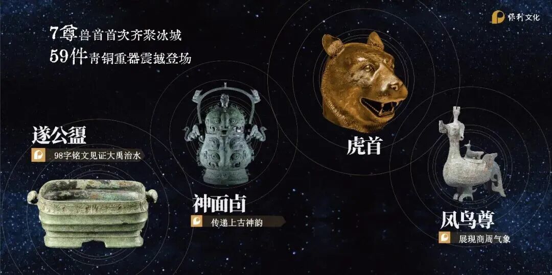 76件珍贵文物悉数亮相,7尊兽首首次齐聚冰城,59件商周至两汉青铜重器震撼登场,其中遂公盨内壁98字铭文是目前已知最早记载“大禹治水”的文物实证,凤鸟尊和神面卣造型独特,工艺精湛,尽显商周青铜艺术巅峰。