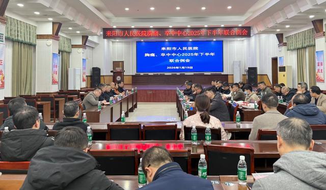 1月19日,耒阳市人民医院召开2025年下半年胸痛中心、卒中中心联合例会。市卫健局分管领导、各网络协作基层医疗机构代表及耒阳市人民医院胸痛中心、卒中中心成员共同检视两大中心建设成果,谋划生命救治通道优化路径。