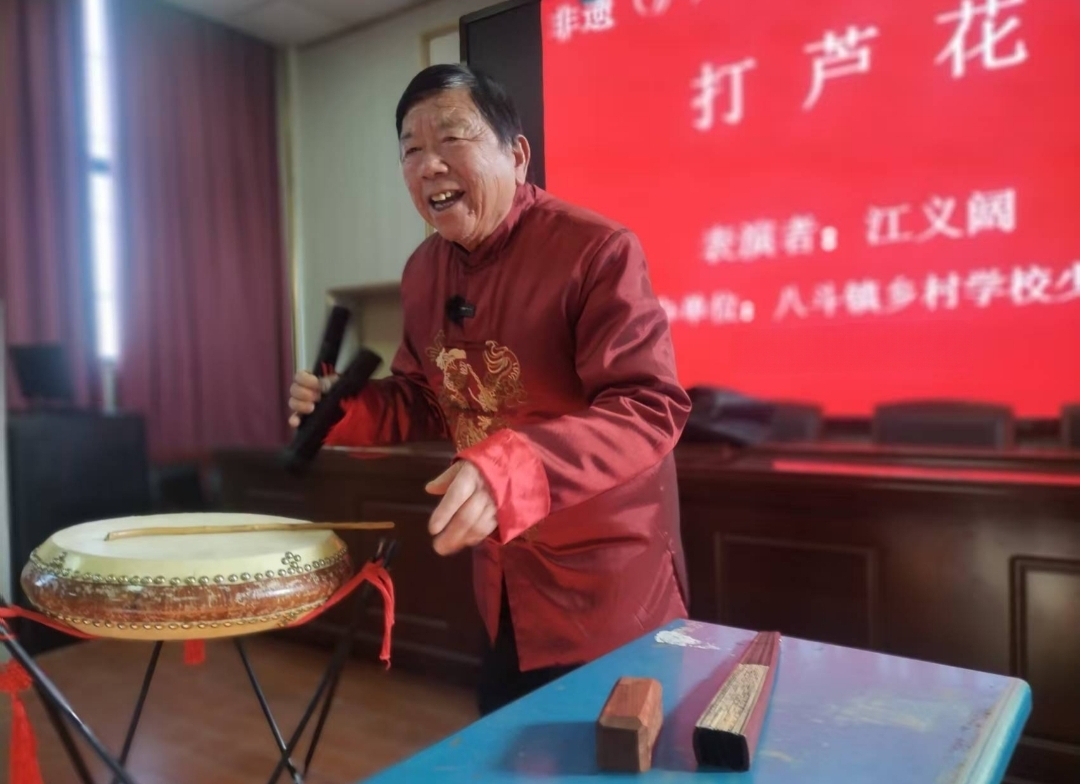 “进校园的曲目,不能只图热闹,必须能打动孩子、教孩子做人。”在授课前,江义阔精心筛选曲目,选择了《打芦花》,“让学生感悟孝亲敬老的传统美德。”