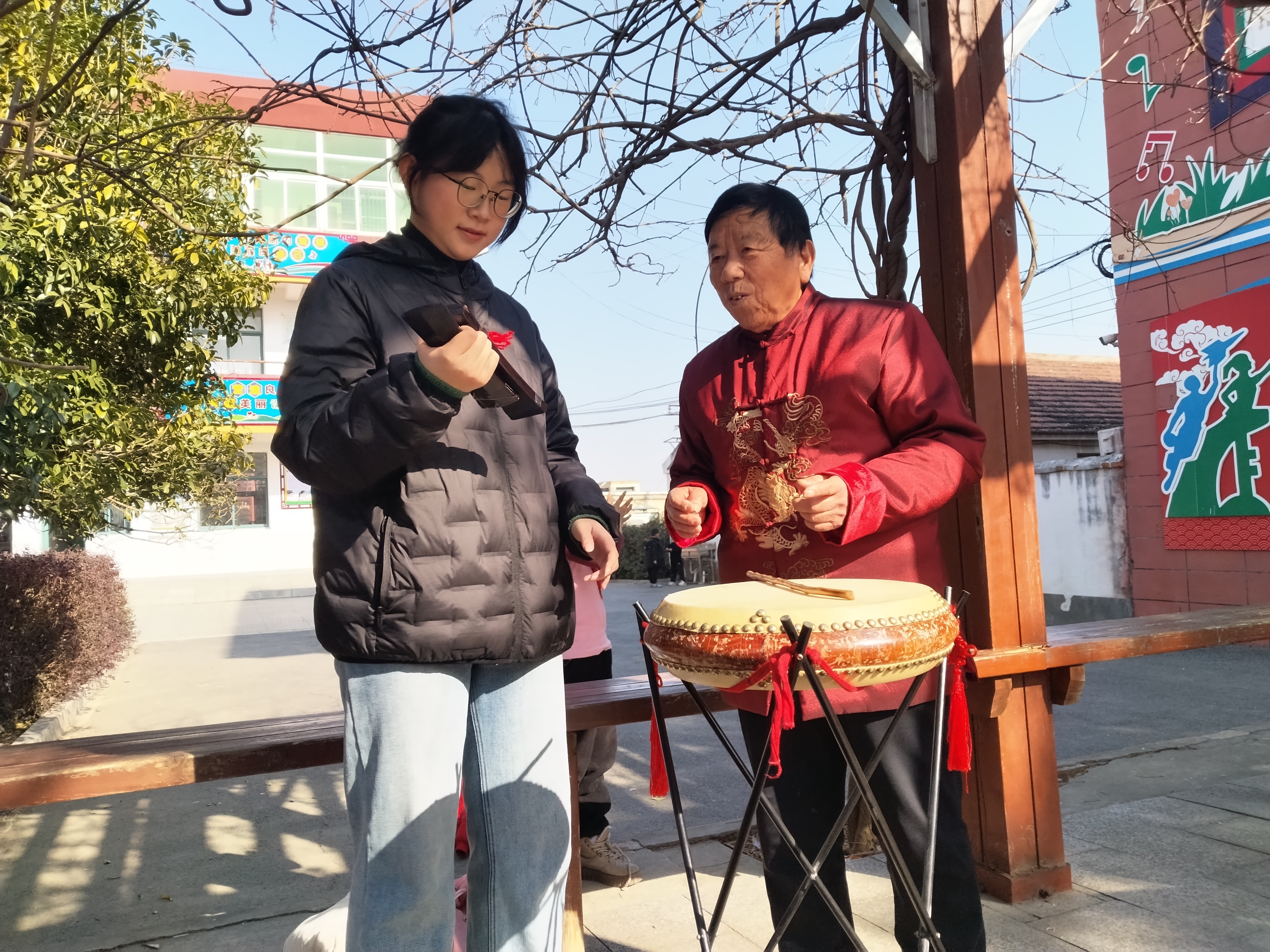 这次的课堂,还有一名“00后”,她是来自安徽师范大学的大一学生宣雅雯。“以前只在书本上看到‘非遗’两个字,今天亲眼见江爷爷敲鼓、听他讲背后的故事,才明白非遗不是冷冰冰的老物件,是有温度、会呼吸的文化。”