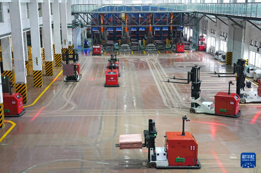 走进江西铜业集团有限公司贵溪冶炼厂智能化电解车间,生产线旁很少见到工人身影,机械臂、机器人不停运转,将转运、质检、仓储等12道工序无缝衔接,行业领先的极板无人智能化转运生产线高效运转。从阳极板下线、质量检测、搬运存储,到阴极铜板检测、捆包、发货,全流程实现自动化作业。