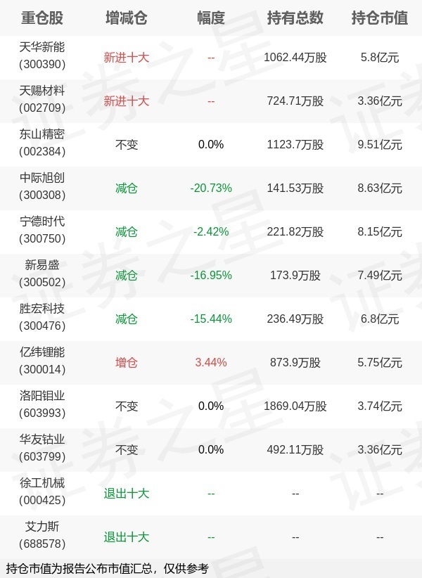 证券之星消息,1月22日摩根基金(中国)旗下杜猛管理的摩根新兴动力混合型基金公布年报,近1年净值增长率86.09%。与上一季度相比,该基金前十大重仓股新增天华新能,天赐材料;其中东山精密持仓占比8.62%,为该基金第一大重仓股;徐工机械,艾力斯等退出前十大重仓股;详细数据如下: