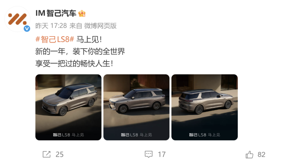 智己汽车是上汽集团旗下的高端品牌,于2020年12月成立,由上汽集团、张江高科、阿里巴巴联合打造。截至目前,智己汽车旗下已布局智己L7、智己LS7、智己LS6、智己L6、智己LS9共5款车型,分别定位中大型车、中大型SUV、中大型SUV、中大型车以及大型SUV。其中,智己LS9于2025年11月上市。随着智己LS8官图的发布,新车也将很快上市,届时智己汽车的产品矩阵也将更为完善。