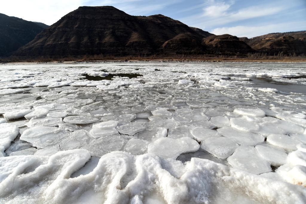 1月21日,黄河壶口瀑布下游大量流凌堆积凝结。(吕桂明 摄)