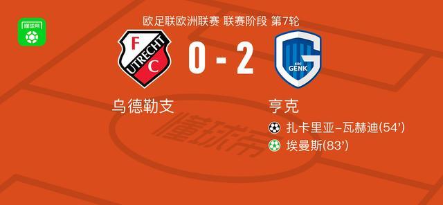 欧足联欧洲联赛联赛阶段第7轮,乌德勒支对阵亨克。扎卡里亚-瓦赫迪破门得分,随后埃曼斯主罚点球命中。最终比分乌德勒支0-2亨克。