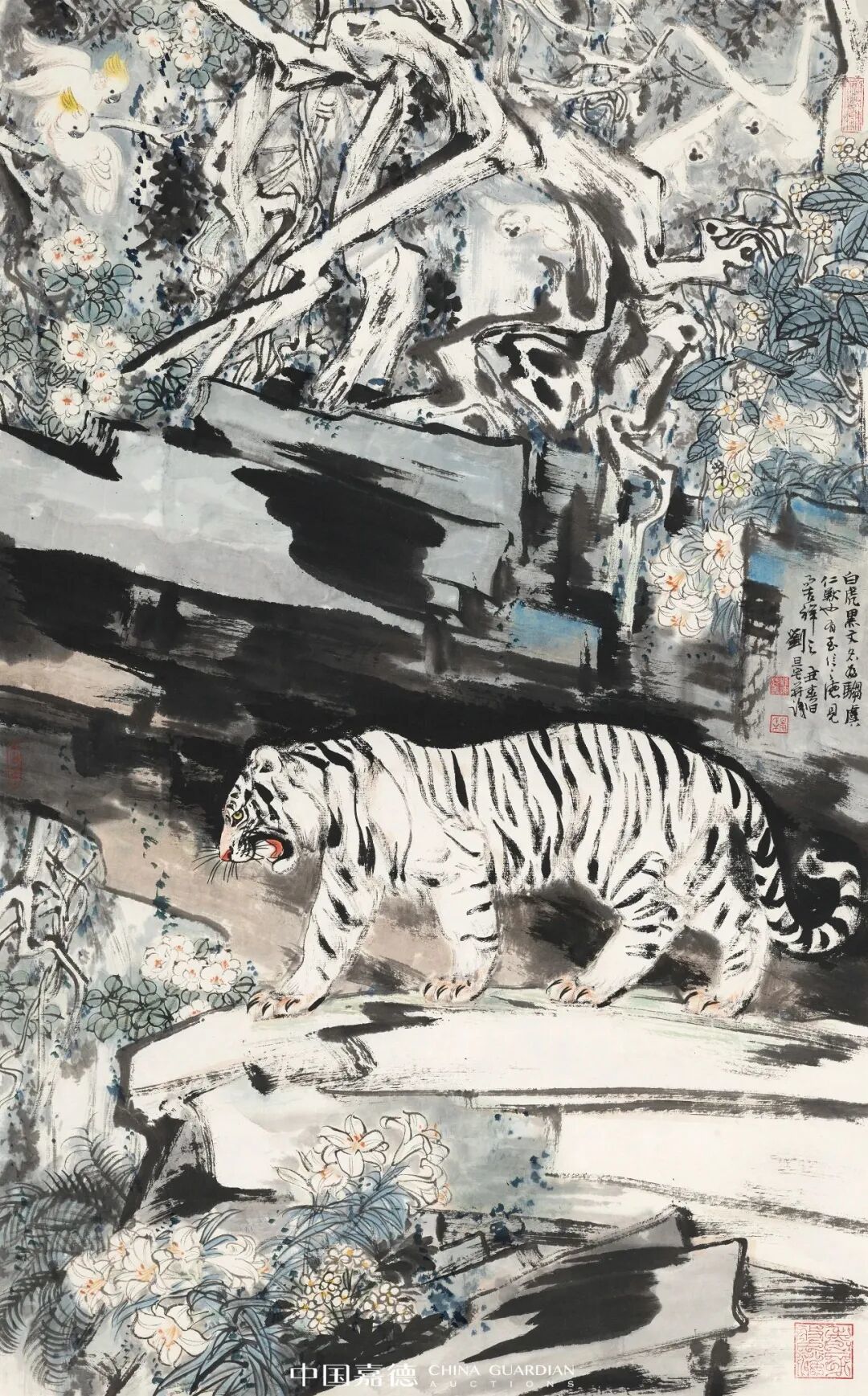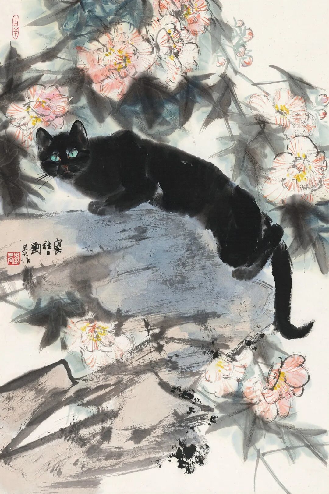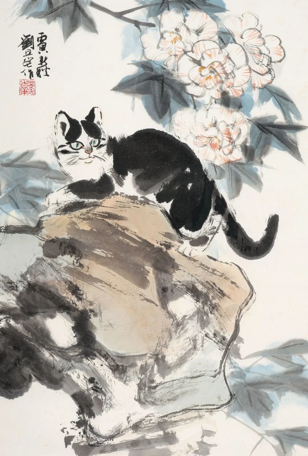 刘旦宅 白猫牡丹