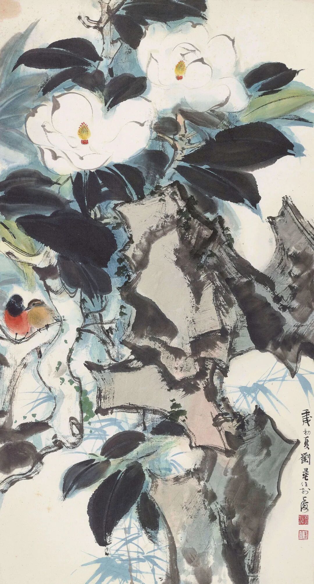 刘旦宅 茶花双禽