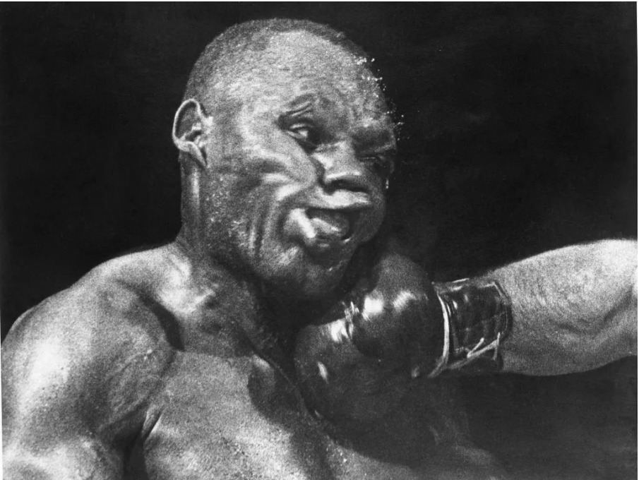 1952 年,赫伯・沙夫曼用镜头定格拳击史经典,马西亚诺一记右勾拳重击沃尔科特,肌肉扭曲、汗珠飞溅,力量感几乎冲破画面。这张照片经过裁剪,聚焦在上半身,但在原始画面里,拳手姿态、裁判神情与擂台灯光,构成了完整的冲击场景。
