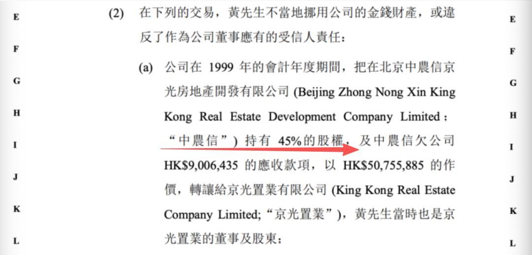 仅靠工商信息做股权穿透是无法锁定到中农信和京光,路数是从香港高等法院2008年的判案书里找到的线索:京光持有北京中农信京光45%的股权。