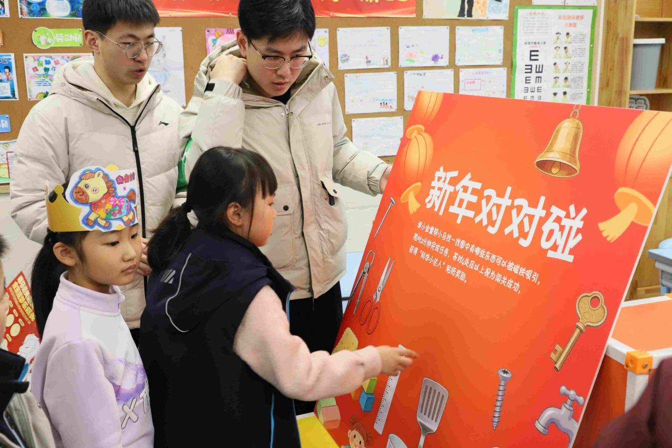 科学关卡“新年对对碰”充满探索乐趣,以趣味配对形式呈现。孩子们在闯关过程中辨别事物特征、匹配科学常识,在动手动脑中解锁科学奥秘,点燃对自然与科学的求知热情,培养探索精神和创作能力。