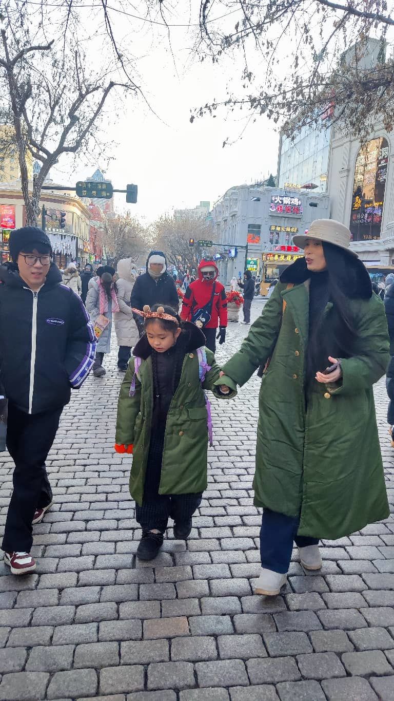 台湾同胞龙江行志愿服务中心全程为网络达人保驾护航,志愿者精心陪伴讲解,为这场冰雪奇遇筑牢温暖后盾。旅程中,亚亚与女儿壹壹的身影尤为亮眼。回溯2024年初,母女二人的“尔滨之旅”带火“小当归”这一温情网络热词;时隔两年故地重游,她们依旧身着标志性绿色军大衣,在冰天雪地间复刻往昔欢乐,再度邂逅龙江人民扑面而来的滚烫热情。“穿上军大衣,我还是村里最靓的仔”,壹壹一句俏皮童言,瞬间将这场冰雪之旅烘得暖意融融,“小当归”的可爱身影也再次在两岸社交平台引发热议。