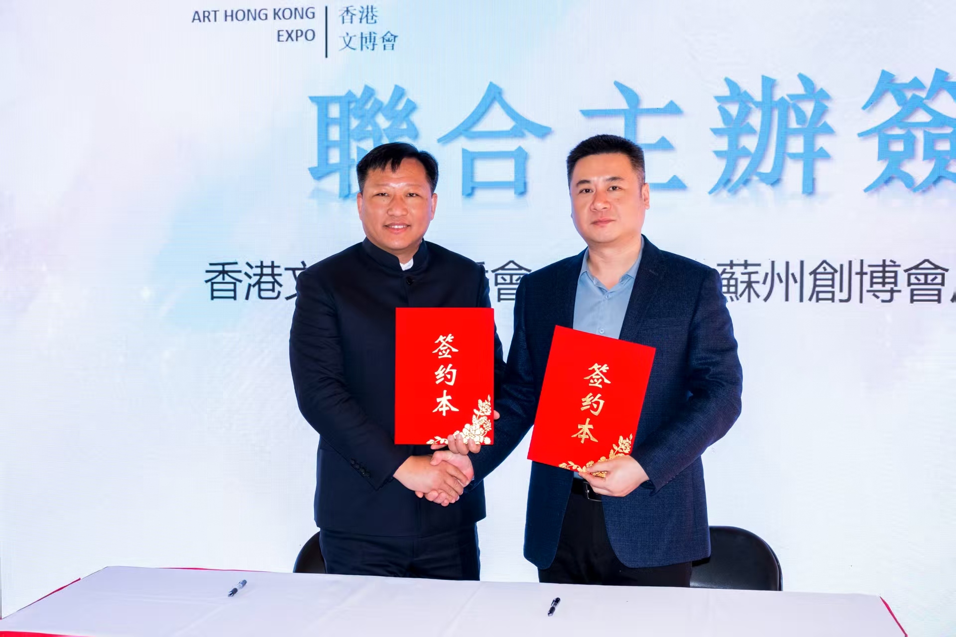 发布会上,香港文博会组委会执行主席皮取兵与苏州国际博览中心管理有限公司副总经理、苏州创博会展览有限责任公司总经理叶喜春签署战略协议,启动香港文博会“联合主办”合作。双方将以苏港两地文博会为纽带,加强苏州与香港双向联动,结合苏州的文化底蕴、产业资源与香港的国际视野、平台优势,共同策划与运营“文创中国”(暂定名)主题展区,通过会展合作促进两地文创、文旅及科技产业协同发展。