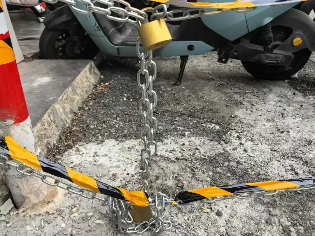 “以前这里是停车场,现在这里是‘锁链阵’。”