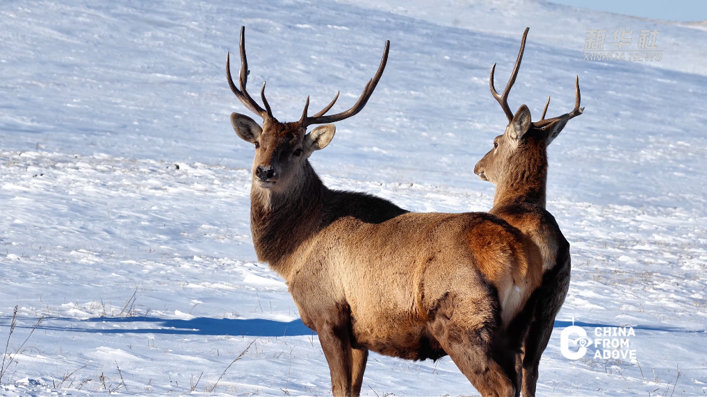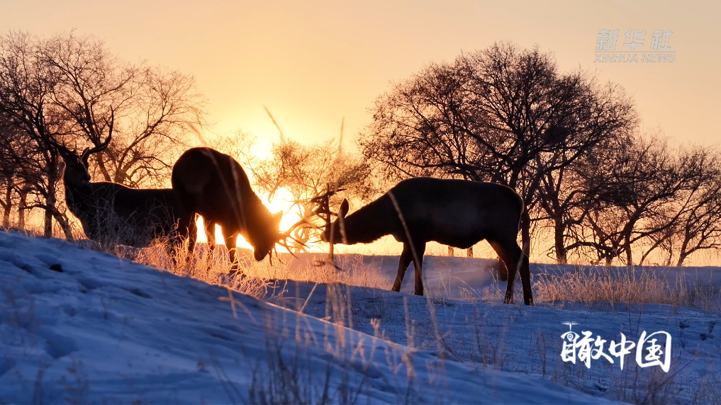 寒夜低温下的内蒙古自治区锡林浩特市白音锡勒草原,在冬日朝阳中缓缓苏醒。几只公马鹿从灌木丛中缓步走出,闲庭信步间舒展筋骨,霜花点缀着浓密鬃毛。在暖阳的映照下,它们扬起粗壮犄角,开启一场清晨的角斗顶架,鹿角相撞的脆响划破旷野宁静,尽显生命张力。