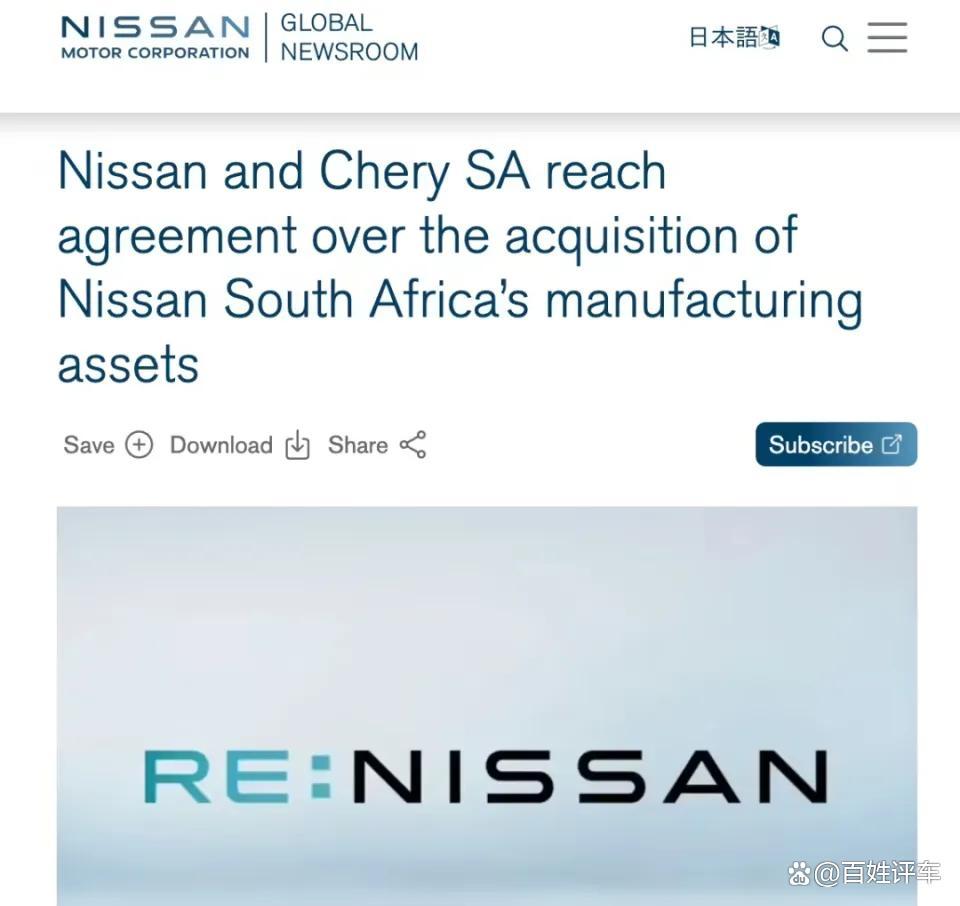 日前,日产和奇瑞南非公司达成协议:日产将把位于比勒陀利亚罗斯林的整车制造资产整体转让给奇瑞汽车,具体包括厂房、土地以及冲压车间。根据双方的说法,奇瑞会接手工厂的核心部分,并留用大约900名现有员工,工资和待遇基本照旧。