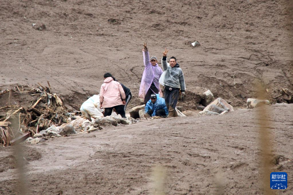 1月24日,在印度尼西亚西爪哇省西万隆县,村民通知救援人员发现遇难者。新华社发(塞提安贾尔摄)
