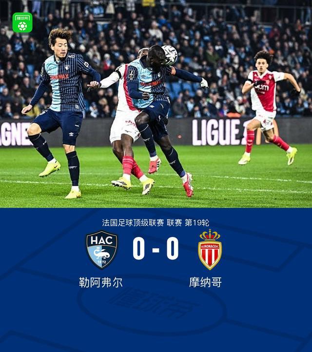 北京时间1月25日,法国足球顶级联赛第19轮,勒阿弗尔主场迎战摩纳哥。双方均未能攻破对方球门,全场战成0比0平局。