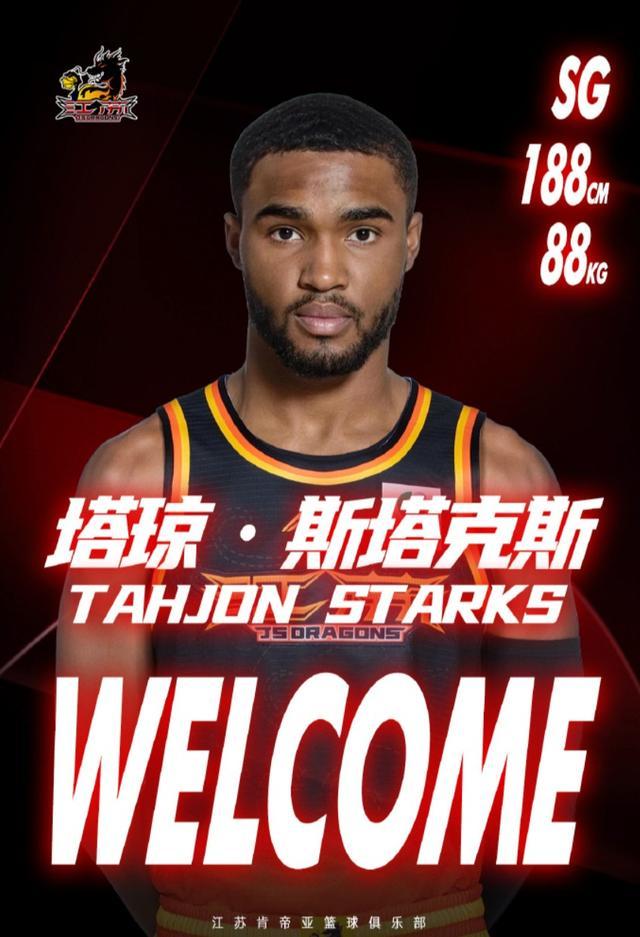 北京时间1月25日,江苏肯帝亚篮球俱乐部官方宣布,球队正式签下美国篮球运动员塔琼-斯塔克斯,本赛季将身披6号球衣出战。