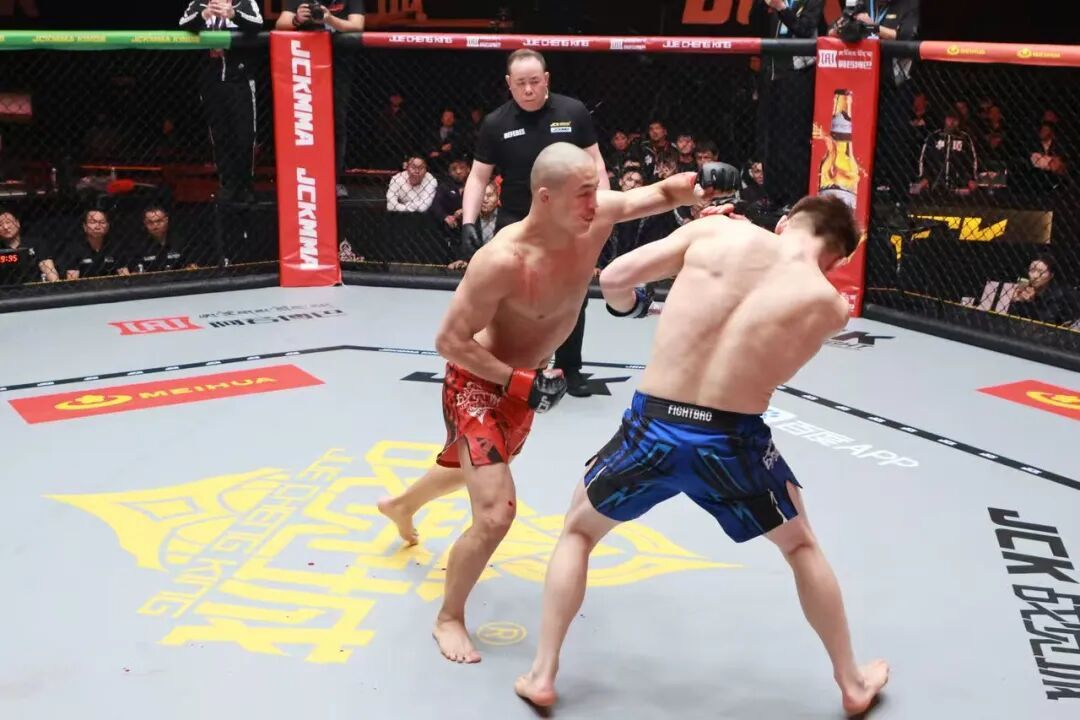 开场仅仅数秒,那尔太标志性的重拳便如雷霆般出击,胡布兰应声倒地,面部被打开伤口。鲜血并未让胡布兰退缩,他迅速调整战术,屡次尝试近身抱摔,试图将比赛拖入自己擅长的地面领域。然而那尔太的防摔技术固若金汤,每一次缠斗都巧妙化解。