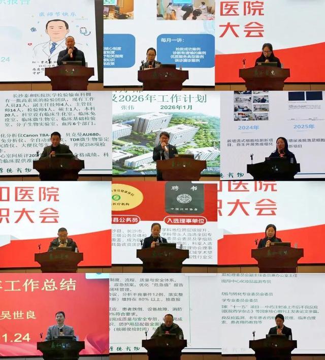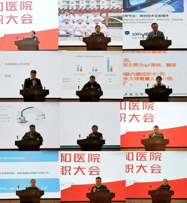 在述职汇报环节,医院行政、后勤、临床、医技等各部门的65名领导干部代表依次登台述职。各位干部立足岗位实际,以详实数据为支撑、具体案例为依托,全面梳理2025年度履职成效,深入剖析工作短板与不足,清晰擘画2026年度工作计划。