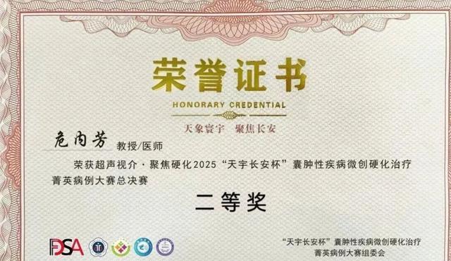 近日,在古城长安落幕的“天宇杯”囊肿硬化性疾病全国总决赛传来捷报。长沙市第四医院超声诊断科青年医师危内芳历经全国病例初筛、多轮预赛与区域选拔的激烈角逐,最终凭借精湛的诊疗技术与优异的临场发挥,在总决赛中脱颖而出,荣获全国二等奖。