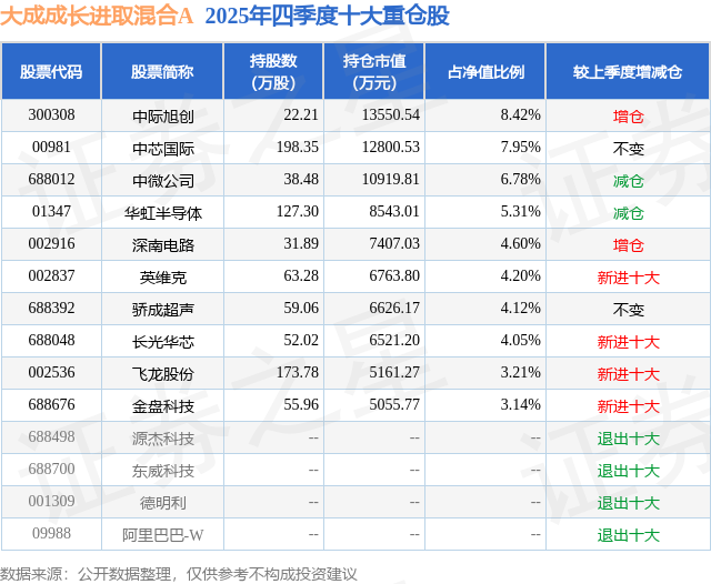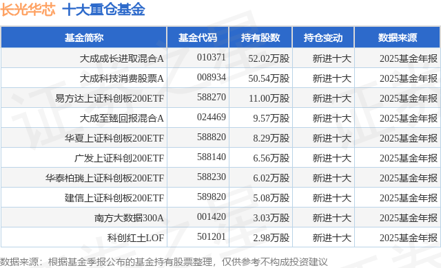 重仓长光华芯的前十大公募基金请见下表: