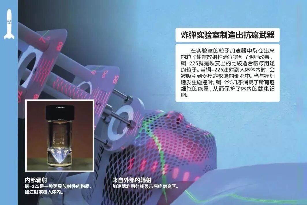 核武器的出现,是20世纪40年代前后科学技术重大发展的结果。核武器是恐怖的终极杀手,它使得战争的残酷性大幅升级。但是,如果没有二战期间开始的核军备竞赛,对放射性物质的研究将永远不会达到今天的水平。现如今,原来为原子弹制造的放射性物质已经被用于完全相反的目标——拯救人的生命。