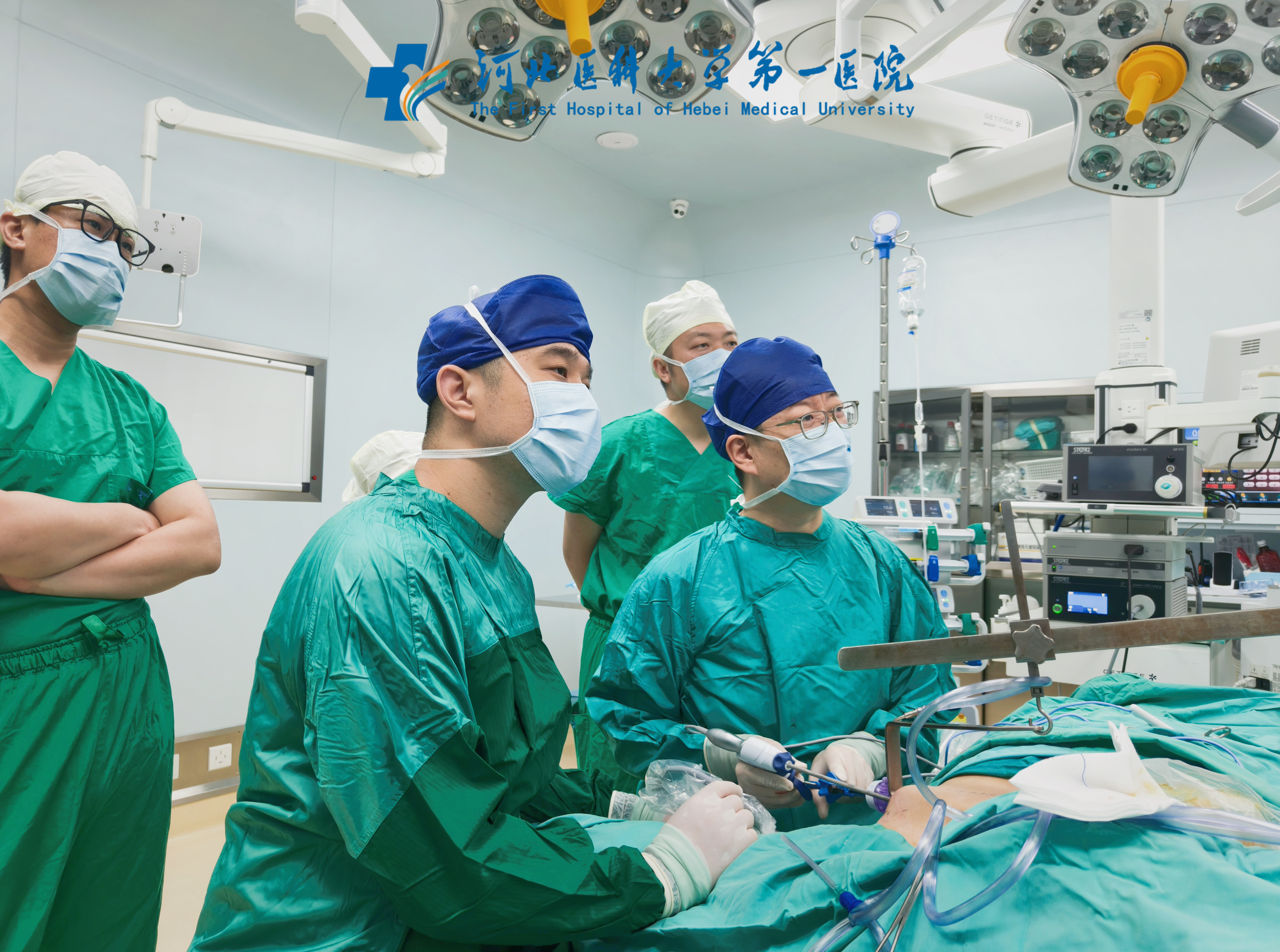河北医科大学第一医院乳腺甲状腺诊疗中心主任刘擘团队正在为甲状腺癌患者行经腋窝甲状腺腔镜微创手术。新华网发(受访者供图)