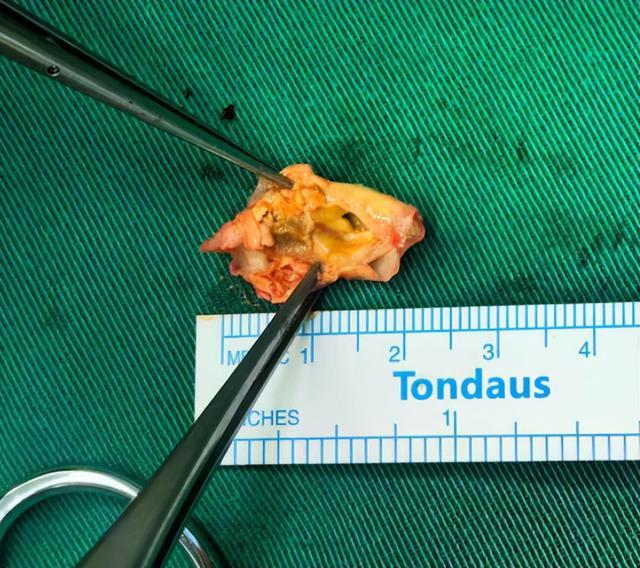 (▲术中取出的颈动脉斑块)