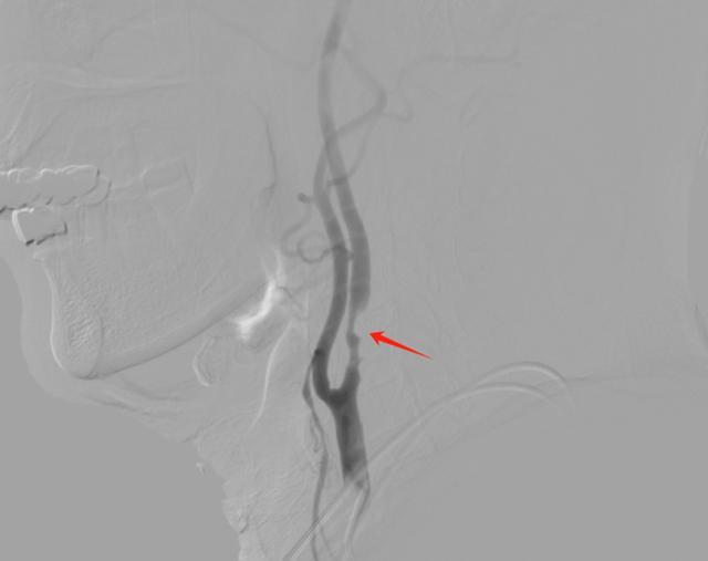 (▲术前DSA检查,红箭头所示为血管狭窄处)