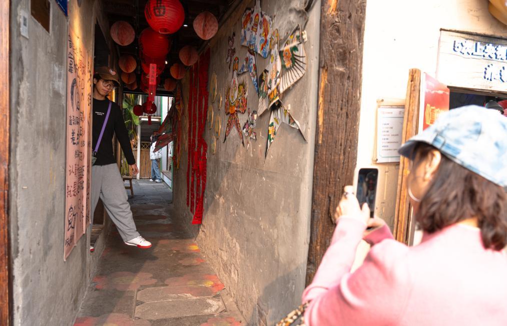 2026年1月18日,游客在山城巷内拍照打卡。新华社记者 李爱斌 摄