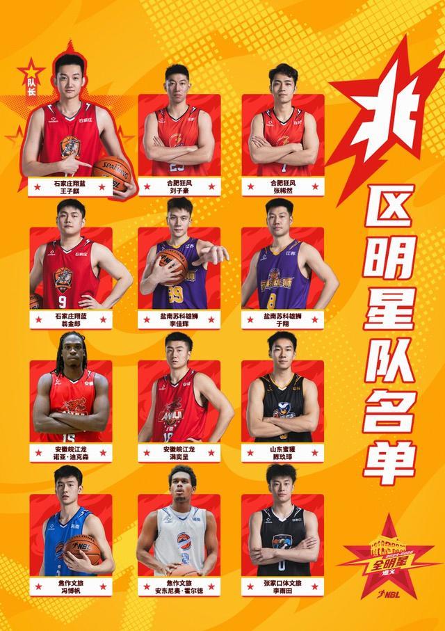 南区全明星名单:王晓明(湖北文旅)、刁展望(香港金牛)、阿诺斯克(香港金牛)、刘剑阁(长沙勇胜)、尼文-格洛弗(江西鲸裕清酒)、郭晓鹏(湖北文旅)、赖益烨(上海玄鸟)、孙椿棚(上海玄鸟)、乔丹-霍华德(杭州经纬)、林树森(贵州猛龙)、李展帆(贵州猛龙)、李云开(贵州猛龙)。