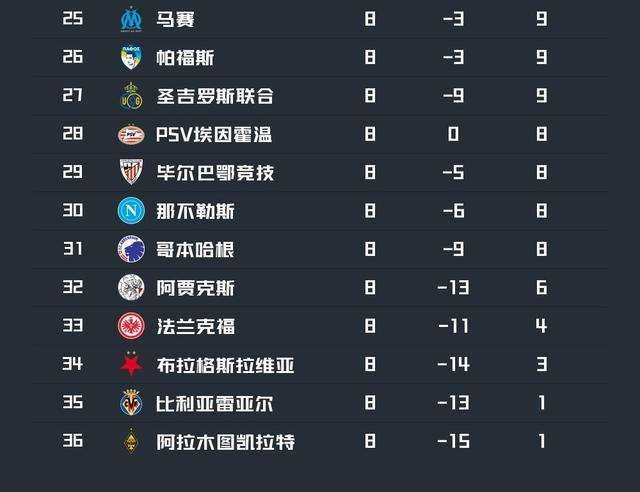 北京时间1月29日,欧冠联赛阶段的所有比赛已经全部结束,直接晋级球队、附加赛球队和出局球队都已经确定。