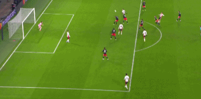 第45分钟,佩里西奇铲射,皮球擦柱而出