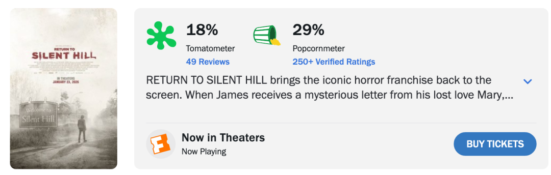 之后,电影《寂静岭2》(改编自游戏《寂静岭3》)于2015年上映,由于过度魔改和剧本粗制滥造,遭遇滑铁卢。