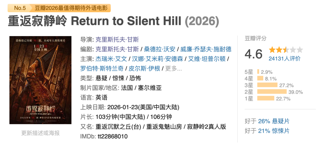 受电影《寂静岭》口碑评分的影响,众人被忽悠住了。