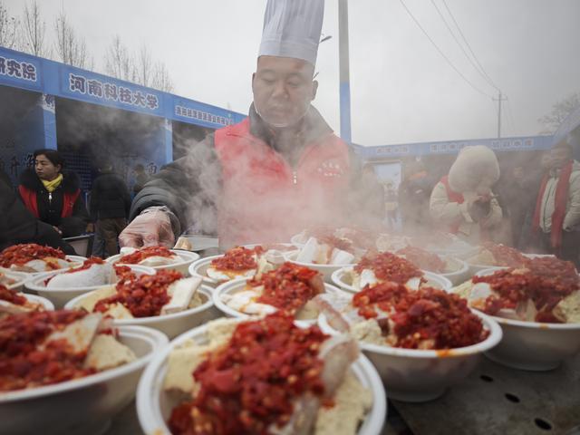 岸边,“庖丁解鱼”绝技引得游人驻足,厨师们将鲜鱼分档烹饪,复刻厨祖伊尹的食鱼智慧。这位诞生于此的“华夏第一贤相”或许早已证明过新鲜的食材往往只需要最简单的烹饪方式。