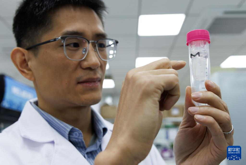 1月21日,在中国科学院物理研究所软物质实验室,姜道华研究员在向记者介绍实验样品。