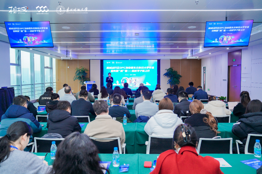 近日,相城经开区OPC创业营东北财经大学专场暨青眼“相”看——名校学子链上行活动成功举办。本次活动以校地协同为纽带,以OPC新型创业模式为核心,搭建起人才对接、项目孵化与产业融合的优质平台,为相城打造“科创新城”、建设“数智经济新高地”注入新动能。东北财经大学工商管理学院院长郑文全,相城经开区党工委委员、管委会副主任慕继武,以及校地双方相关领导、师生代表、OPC人才项目代表、区内人工智能重点企业、创投基金代表、行业专家等共同参加活动。