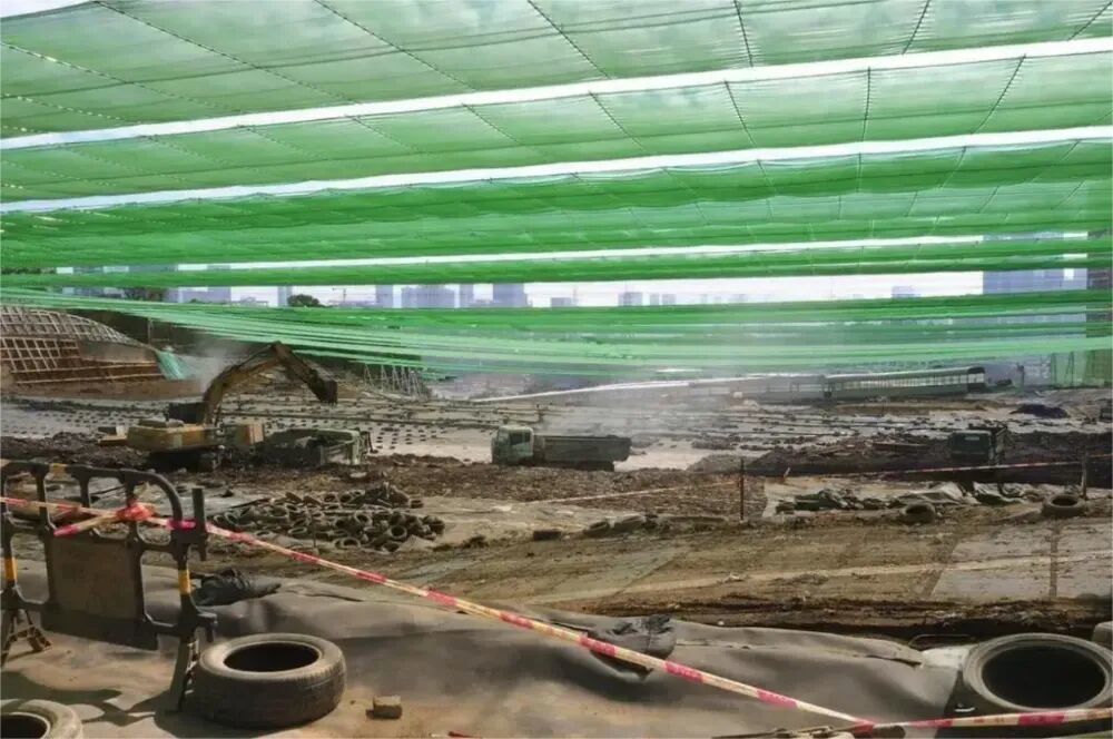 11.69万平方米的超大绿色天幕下,多台挖掘机有序工作着,对这座沉睡近30年、海拔110米、高差达46米的垃圾山,进行精准“解剖”。