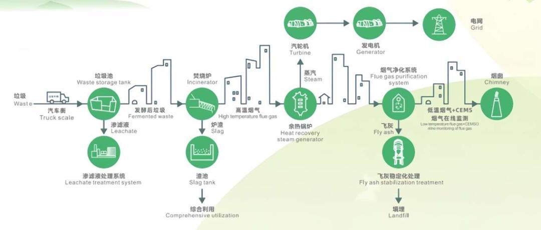 垃圾焚烧发电厂的工艺流程图 图源:绿色动力环保集团