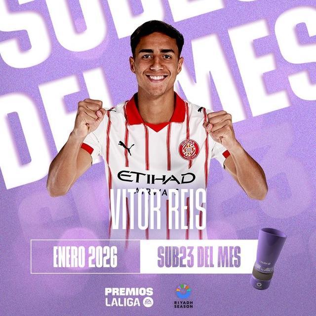 官方消息,赫罗纳后卫维托尔-雷斯当选西甲官方1月最佳U23球员。