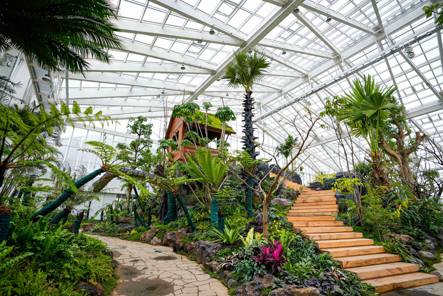 综合性展览温室占地面积近1万平方米、汇聚全球1700多种奇花异草,目前各项准备工作已进入最后阶段。步入温室,你将看到丰富多彩的植物世界。这座温室采用系统化、专题化的分区设计,共设热带雨林馆、沙生植物馆、凤梨馆、秋海棠馆、食虫植物馆和四季花园六大主题展馆。