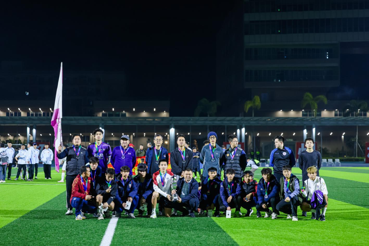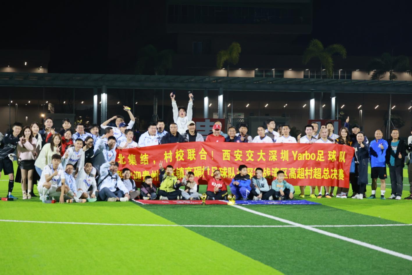 在“贵州村超”持续火爆、“湾区高超”蓬勃发展的热潮下,2026第二届高校校友嘉年华暨第二届湾区高校校友贵州村超足球联赛总决赛于2026年1月25日在深圳理工大学体育场圆满落下帷幕。开幕式、入场仪式、文艺表演、开球仪式依次上演,来自“湾区高超”与“贵州村超”的四支结对子联队同场角逐,西安交大高硐村3:1战胜清华摆列村摘下冠军奖杯,清华摆列村获得亚军;中大桥乌村2:0战胜西南交大王岭村夺得季军。西安交大高硐村的罗望获得金球奖,张林钰获得金手套奖,段瀚宁与冯世刚共享金靴奖;“湾区高超”明星联队与深圳理工大学教工联队进行了明星表演赛。近千名大湾区及全国各地的嘉宾与球迷,现场见证了这场文体融合的嘉年华盛宴,同时通过“湾区高超”视频号也吸引了近万名观众线上点赞加油。