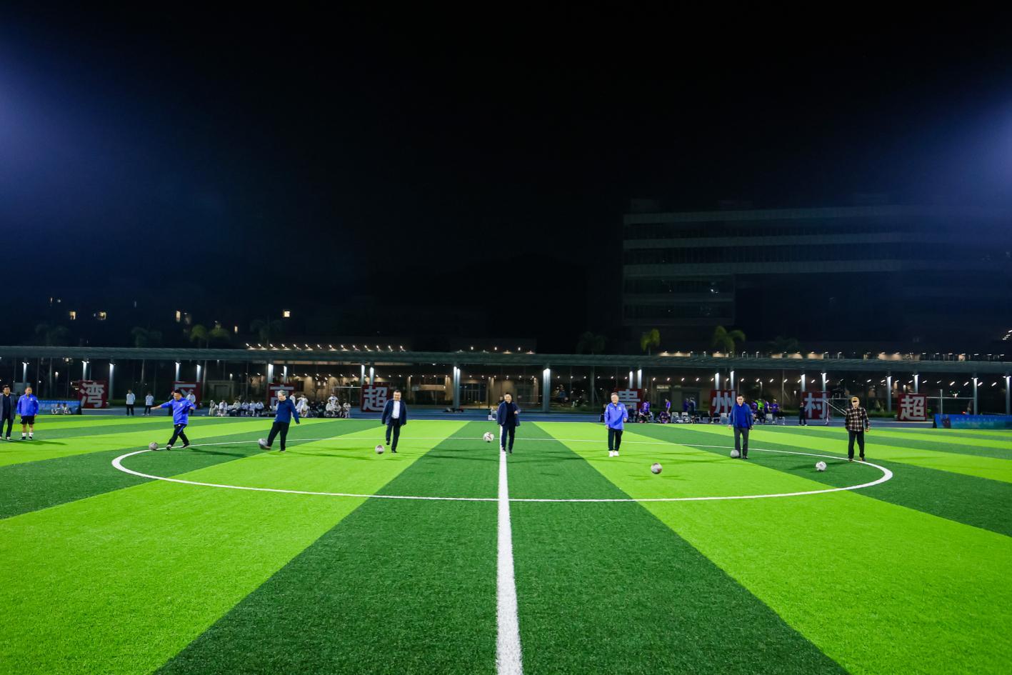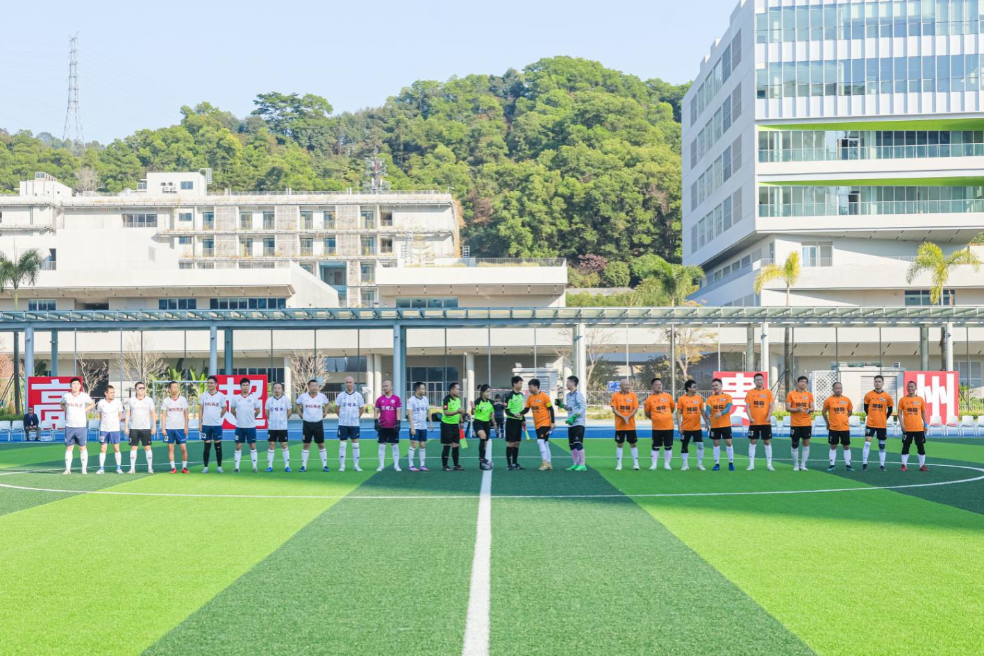 在深圳理工大学教工联队迎战湾区高超明星联队的明星表演赛上,双方球员尽情享受足球乐趣,默契配合、精彩传球不断上演。最终湾区高超明星联队凭借孙明培、陈庆军、陈鸿运的进球以3:1的比分赢得胜利,为现场观众带来了一场兼具观赏性与趣味性的友谊对决。