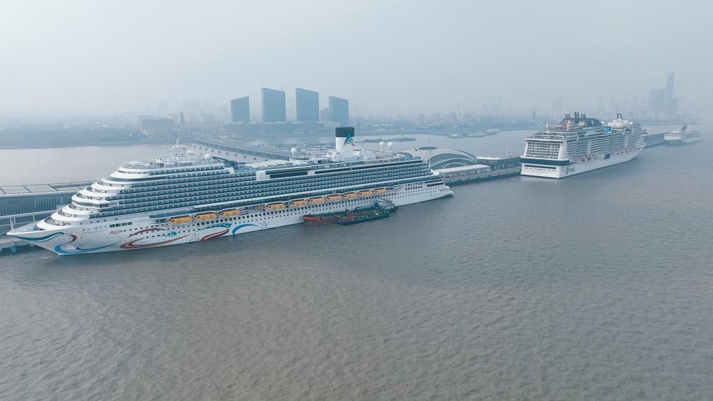 1月27日,上海吴淞口国际邮轮港迎来2026年首次“两船同靠”。新华社发